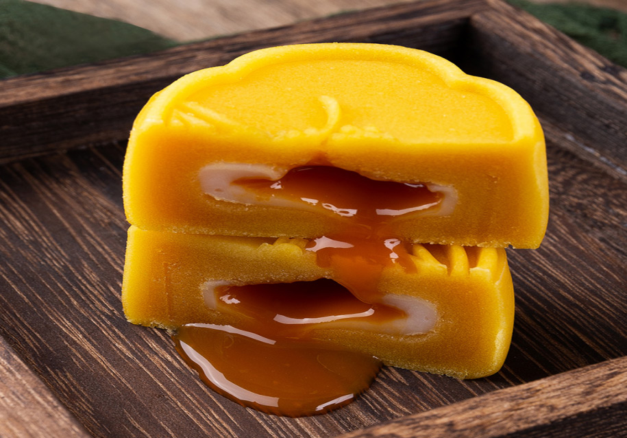 四层流芯奶黄月饼口感丰富,奶香浓郁,流油起沙的咸蛋黄细润绵软,只要一口就会念念忘。